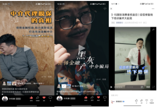 在3·15宣传活动期间泰隆银行通过微信公众号原创推送《征信修复线下培训骗术大起底》《3·15消费者权益日|了解金融知识,保护合法权益》等主题文章。同时泰隆银行结合“许阿舅”IP,拍摄制作“中介代理脱保的真相”“警惕金融黑灰产中介骗局”“征信修复骗局”等宣传教育短视频,取得了良好的宣传效果。绍兴分行联动绍兴新闻广播电台,在活动期间早晚高峰电台发布风险提醒,高频触达通勤人群。
