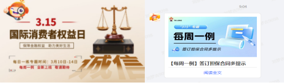 泰隆银行消费者权益保护部以本次3·15活动为契机,聚焦消费者权益保护主题,面向全行发布2024年度投诉典型正负面案例,供各级机构学习,助力一线矛盾纠纷化解。同时,在全行开展消保专项的“每日一题”“每周一例”答题活动,按照全员普及、人人知悉的原则,在3·15期间推送普及消保知识、打击非法金融中介的相关素材,全行员工广泛参与。