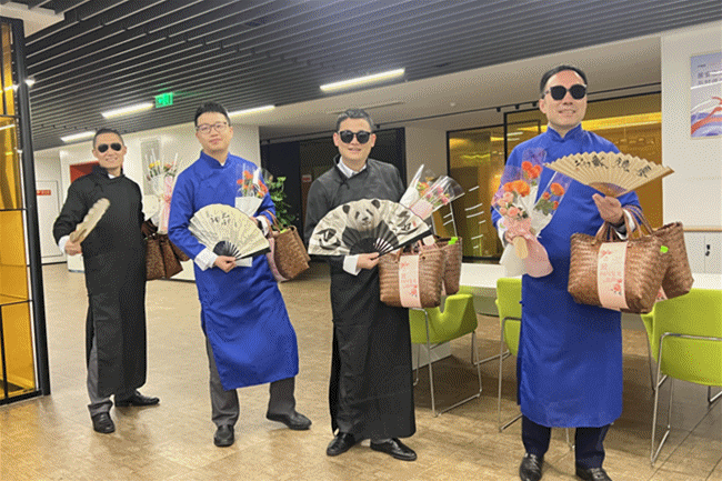 活动当天,分行班子男神团手持鲜花与礼盒为分行大楼的女神们送上了“悦·享”三八节日礼包。