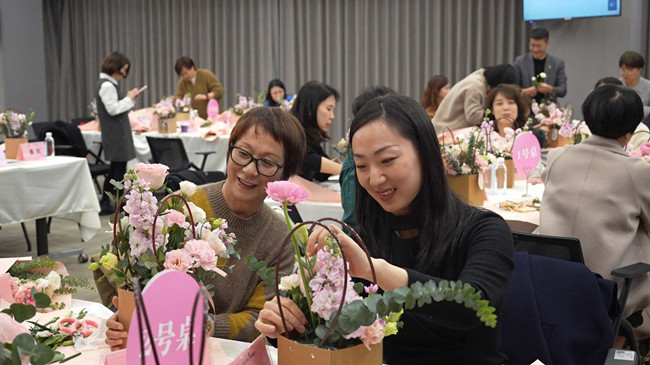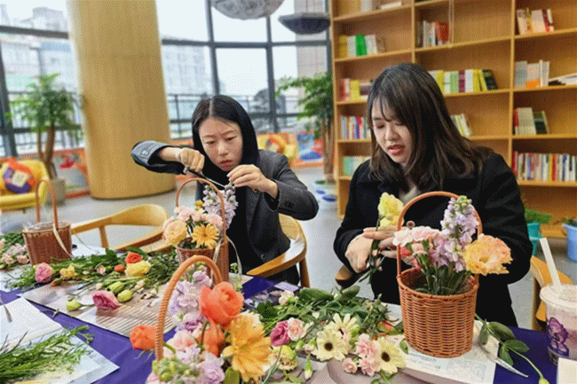 村行各网点化身春日驿站,以别样温情致敬城乡女神:营业部“馨香盈怀”, 康乃馨与业务凭证共舞,每位办理业务的女性客户都将邂逅“泰隆式浪漫”,花瓣间藏着“服务小微”的郑重承诺;槐芽支行“生财花开”, 创意插花工作坊里,金银花与满天星编织成财富密码,客户指尖绽放的不仅是春色,更是“服务三农”的智慧结晶;横渠支行“珠联璧合”,水晶碰撞的清脆声响中,村镇女性用慧心串联乡村振兴的璀璨愿景,每颗琉璃珠都倒映着普惠金融的初心;常兴支行“绾青丝语”, 阿姨们巧手翻飞间,发饰化作田野阡陌上盛开的金融之花,用最朴素的审美诉说"金融向善"的动人故事。