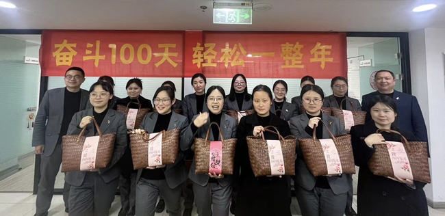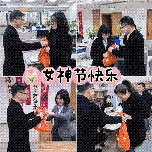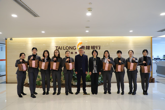 在杭州、台州两地,各楼层男同事代表们一早便惊喜出动,将泰隆妇联精心准备的节日礼盒一一送到泰隆女神们的手中。