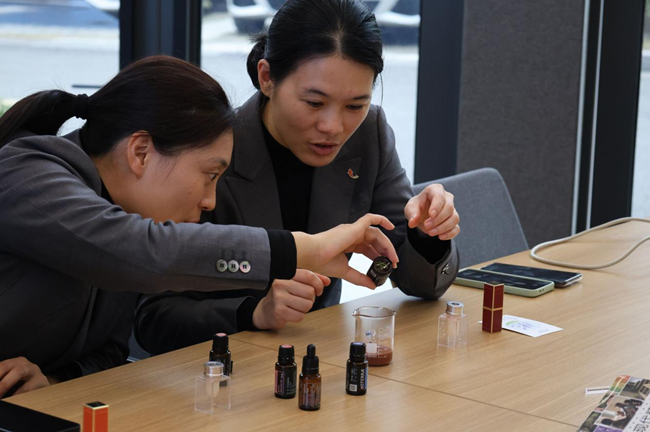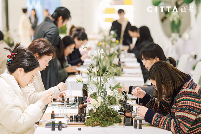 当天下午,女员工们换上靓装前往西苔公司参加“香遇美好·悦享生活”调香沙龙,享受一场优雅和合的文化共建。大家参观了解了西苔香薰的选香故事和香气疗愈发展史,随后共赴神奇的调香创作,调制出独属的个人香氛。