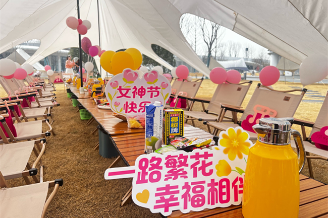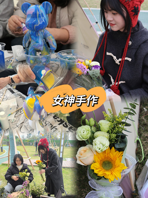 龙海村行精心策划的“悦己·绽放”女神节主题活动,得到了女神们的积极响应。在沙洲露营基地里,运用三原色配色技巧,将颜料自由泼洒于小熊模型上手制流体熊;结合色彩搭配法则,将春日气息融入花艺创作的自由插花;如何通过妆容提升个人气质的专业化妆课程将现场氛围推向高潮。当然,露营基地准备的烧烤摊,让现场多了一抹烟火气。
