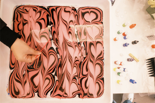 分行组织“水中生花,丝享艺术”水拓丝巾手作活动,邀请手作老师现场教学,小伙伴们互动、学习、动手,制作出专属自己的独一无二水拓丝巾。