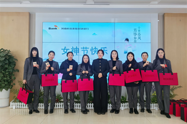 3月7日当天,在村行妇委会的组织下,各网点掀起节日热潮,纷纷为女性职工发放节日礼包、筹备精致下午茶,致敬每一个了不起的她。