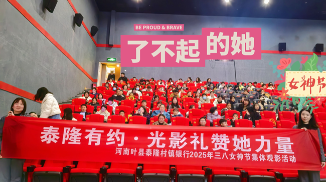 3月8日,叶县村行组织女职工及其亲属、泰隆女性客户开展“泰隆有约·光影礼赞她力量”主题的集体观影活动,以光影为媒,为节日注入精神内涵。