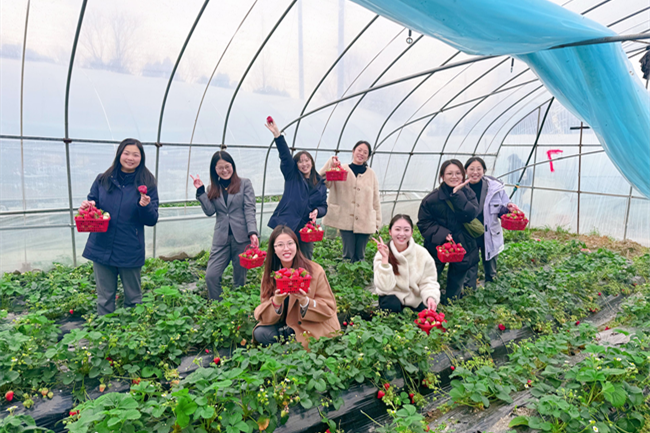 3月1日,草莓采摘活动拉开三八妇女节系列活动的序幕,当满载而归的篮筐与笑靥同框,大家浸润在自然的馈赠中,也在田野间汲取春天蓬勃生长的力量。