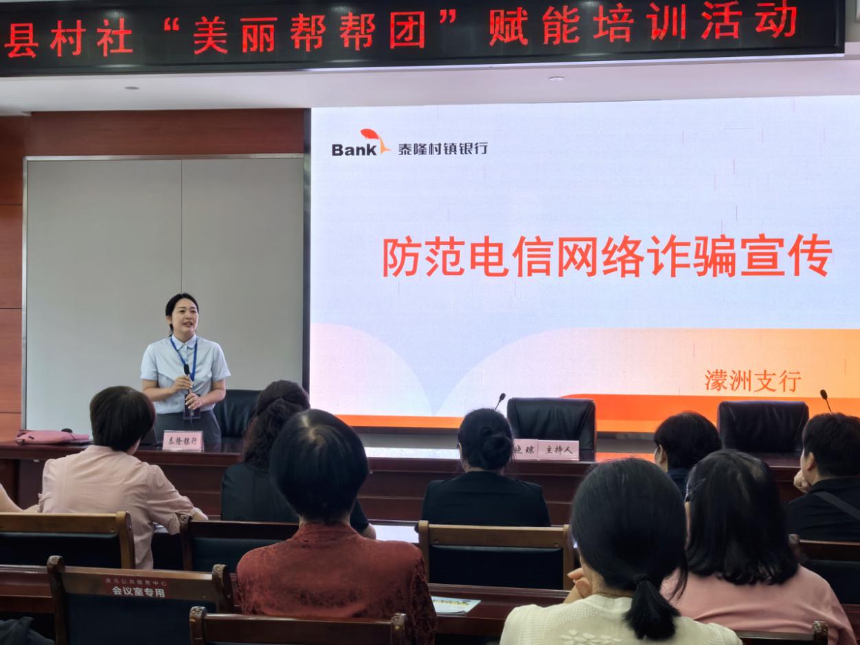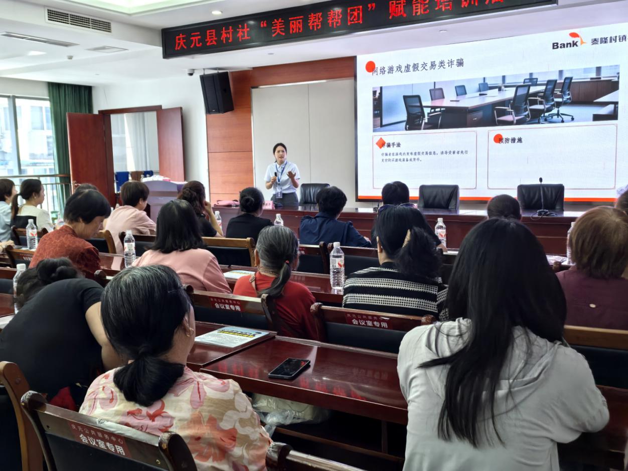 本网讯(记者 郑丽艳)在电信诈骗、养老骗局等违法犯罪手段不断翻新升级的当下,这些违法行径不仅严重威胁人民群众的财产安全,更对社会和谐稳定构成巨大挑战。为切实履行社会责任,助推妇联“女性赋能、家庭守护”工作在社区精准落地,6月26日,庆元村行濛洲支行携手县妇联,以“反诈赋能·妇联同行——全县社区美丽帮帮团启新程”为主题,组织开展反诈教育与妇联工作宣导活动,为全县社区“美丽帮帮团”核心成员赋能,全力促进金融安全知识与妇联服务政策在基层落地生根、取得实效。