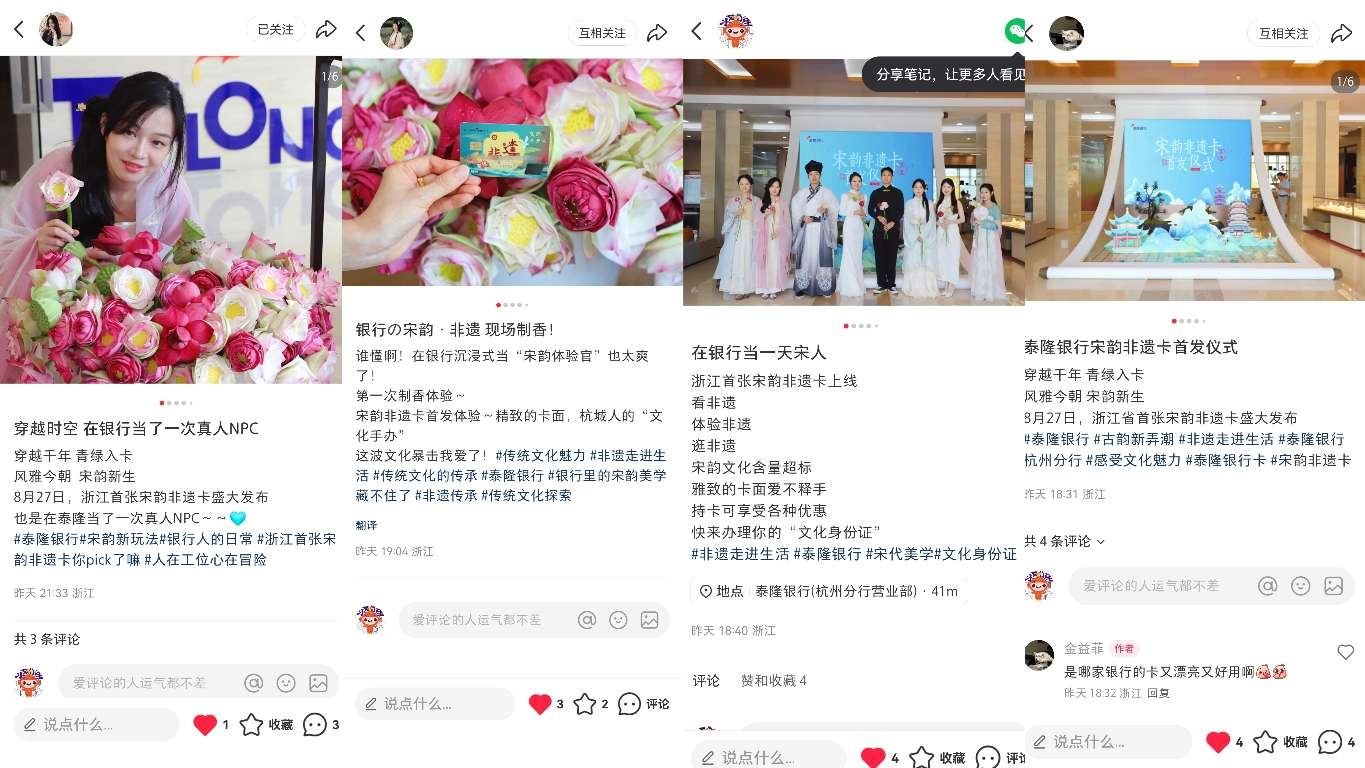 金融为媒、文化为魂。宋韵非遗卡的正式发布,标志着泰隆银行杭州分行在探索“惠民-文化-经济”三位一体的模式中,既为广大市民打开了亲近传统文化的新视窗,更为非遗项目带来了实实在在的市场订单。我们也将持续在宋韵非遗卡引发的“金融跨界、文化IP、非遗传承”中找寻业务切口创造实绩,不断完善“宋韵网点变革”体系的建设,加速形成构造一个线上线下联动、多方共赢的文化创新生态。