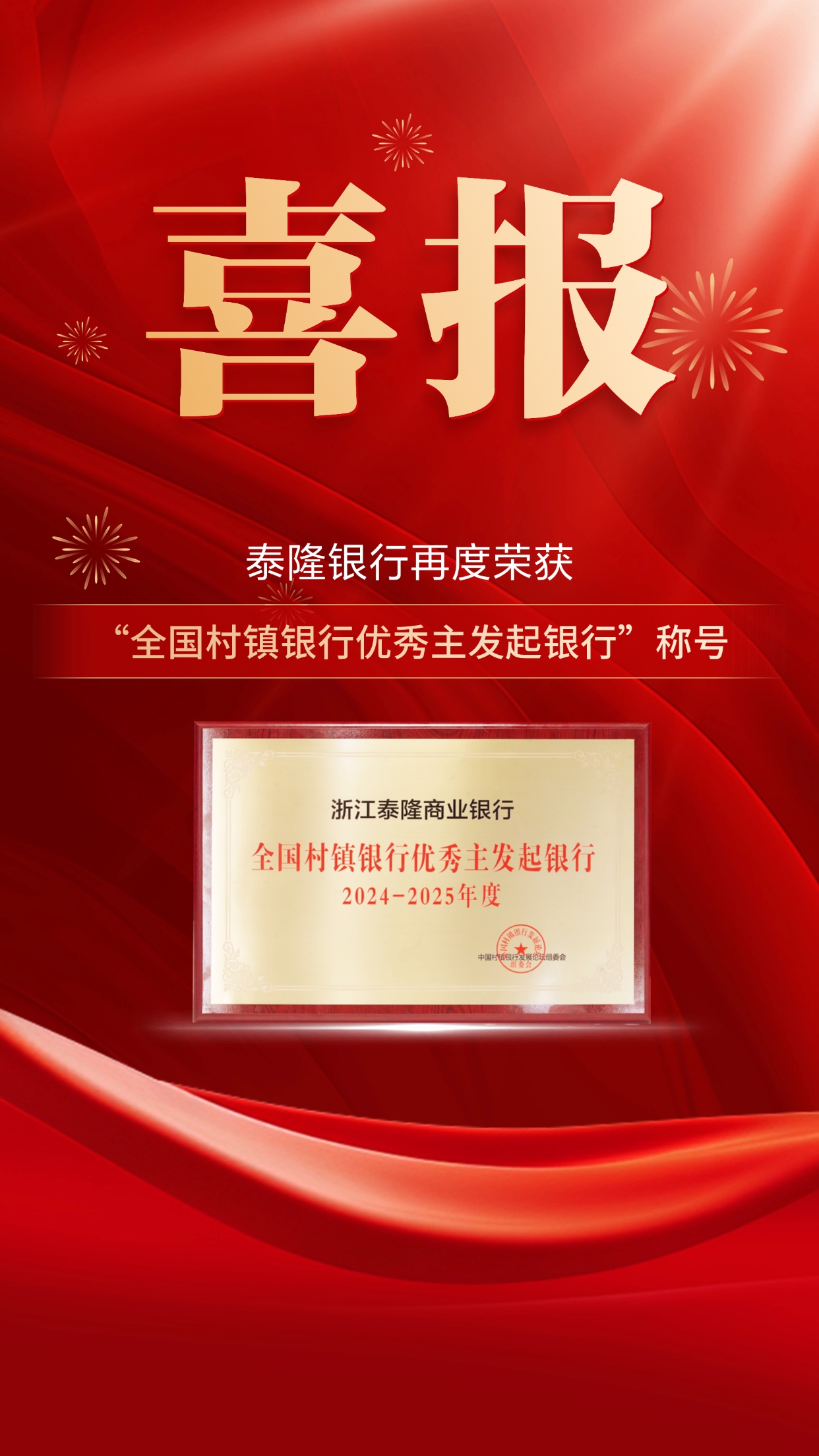 11月16日,第六届中国县域金融发展论坛暨第十七届中国村镇银行发展论坛在广州召开。泰隆银行再度荣膺“全国村镇银行优秀主发起银行”称号,这一荣誉充分彰显了业界对泰隆村镇银行在发展建设、综合服务等方面成果的认可。