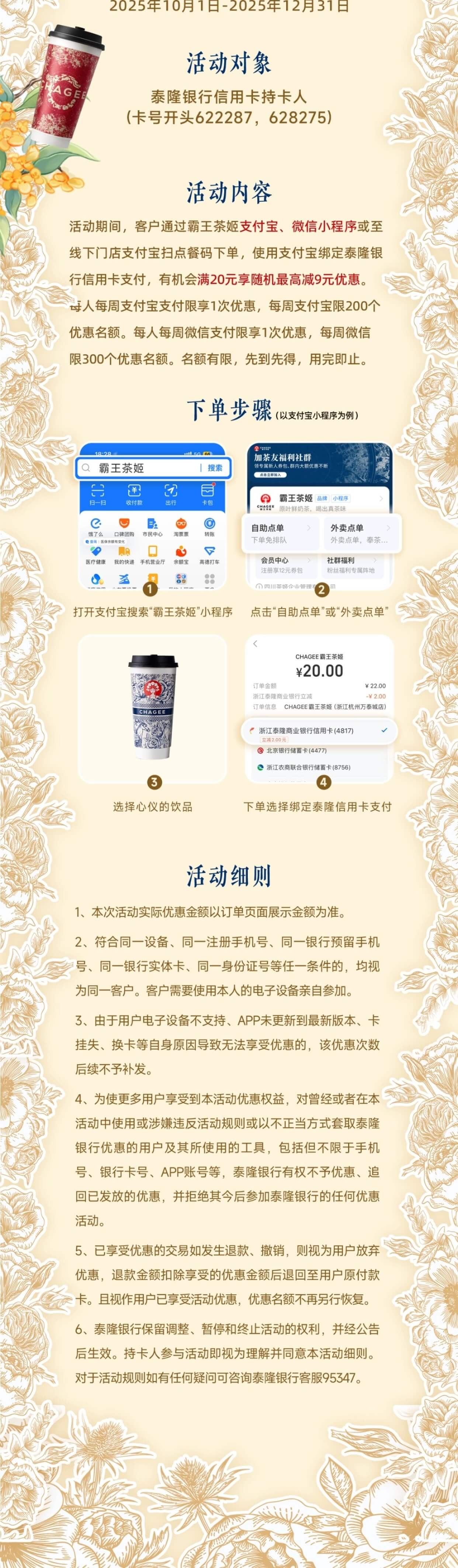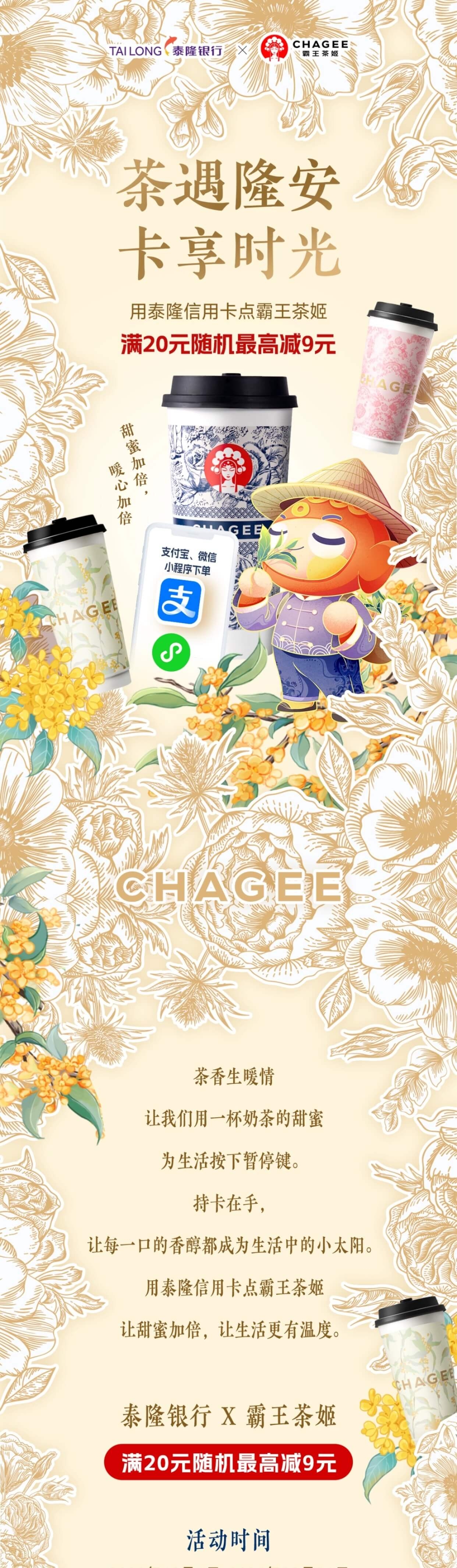【美食特惠】茶遇隆安,卡享时光,点霸王茶姬满20元随机最高减9元