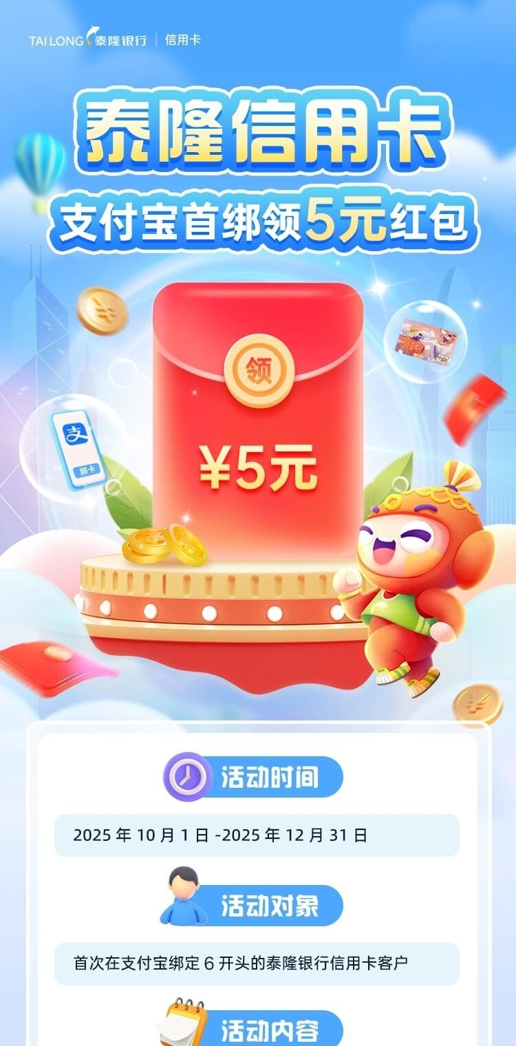 支付宝首绑领5元红包