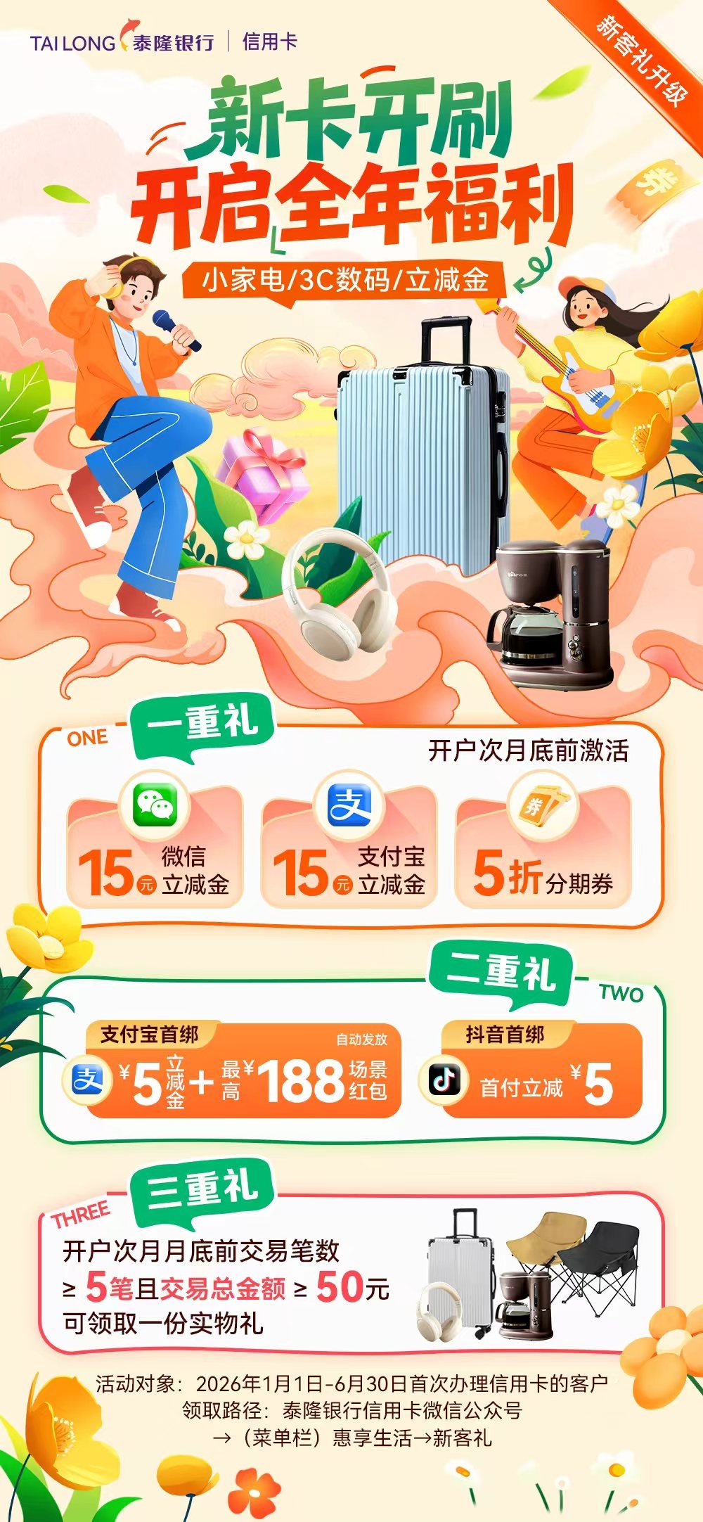 新卡开刷,开启全年福利,小家电、3C数码、立减金等你拿