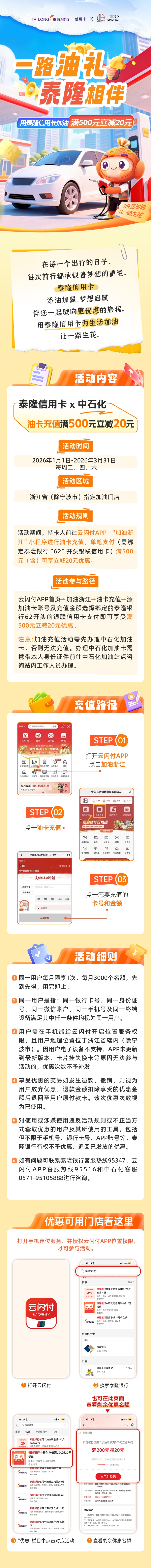 【加油特惠】一路油礼,泰隆相伴,中石化油卡充值满500元立减20元